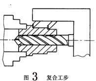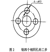 如圖2所示零件,連續(xù)鉆四φ15mm的孔,可看作一個工步鉆4孔φ15mm,以簡化工藝文件,另一種情況,有時為了提高生產(chǎn)率,用向把不同刀具,同時加工幾個不同表面,如圖3,也可看作一個工步,稱為復(fù)合工步。