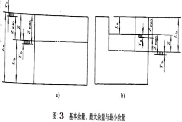 由于毛坯尺寸不可避免地存在公差,因此,無論是加工總余量還是工序余量實際上是個變動值,于是加工余量又有基本余量、量大余量和最小余量之分。通常毛坯尺寸按雙向標(biāo)注上、下偏移,工序尺寸按入體原則標(biāo)注極限貪偏差為零,即基本尺寸就是最大極限尺寸;對包容面下偏差為零,即基本尺寸就是最小極限尺寸。