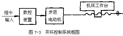 1)開環(huán)控制數(shù)控機床,在開環(huán)控制中,機床沒有檢測反饋裝置(見圖7-3),數(shù)控裝置發(fā)出信號的流程是單向的,它對機床移動部件的實際位置不作檢驗,加工精度主要取決于伺服系統(tǒng)的性能。這種機床工作比較穩(wěn)定,反映迅速。調(diào)試方便,維修簡單,但其控制精度受到限制。