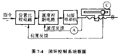 閉環(huán)控制系統(tǒng)框圖見圖7-4。圖中A為速度測量元件,C為位置測量元件。這類機床的優(yōu)點是精度高、速度快,但是調(diào)試和維修比較復(fù)雜。