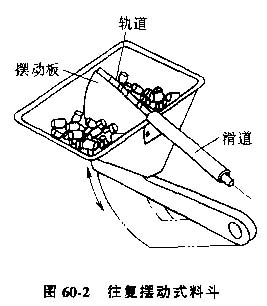 2) 擺動式料斗,圖60-2為一種典型的擺動式料斗結(jié)構(gòu)。擺動板由凸輪或曲柄驅(qū)動,零件隨軌道擺動到與滑道一直的威勢時,方位正確的將進入滑道,不正確的回落到料斗。