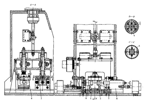 在一個(gè)托架上擰松螺帽、托架向上提升,將裝配件送到定位機(jī)構(gòu)和雙主軸螺帽的扳手處。主軸的旋轉(zhuǎn)使螺帽扳手下降,將連桿頭螺帽套住并擰松6~8,再用專用裝置將連桿蓋分開(kāi)放下,利用擺桿型輔助運(yùn)輸器,將裝配件從線上轉(zhuǎn)移到有八個(gè)工位的回轉(zhuǎn)式貯料裝置中。待四個(gè)裝好連桿活塞的機(jī)構(gòu)裝在貯料準(zhǔn)固執(zhí)的一段導(dǎo)料板上之后。貯料裝置回轉(zhuǎn),下一段料板移近。貯料裝置裝滿后,裝配機(jī)構(gòu)由裝配單元計(jì)數(shù)繼電器發(fā)出信號(hào),停止送進(jìn)。