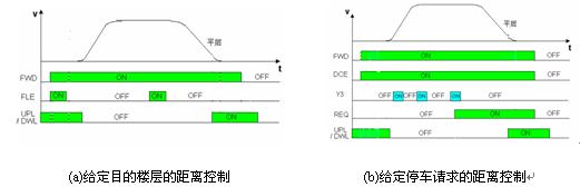 TD3100是我司在高性能矢量變頻器TD3000基礎(chǔ)上開發(fā)的電梯專用變頻器,深受電梯廠家的青睞。其中的距離控制功能,實(shí)現(xiàn)了樓層距離自學(xué)習(xí)、直接高精度?抗δ埽脩魺o需進(jìn)行減速點(diǎn)的計(jì)算,簡化了用戶的軟件設(shè)計(jì)工作量,在電梯和立體倉庫方面得到了廣泛的應(yīng)用。變頻器將各個(gè)樓層的高度信息通過編碼器學(xué)習(xí)記憶在存儲(chǔ)器中,在運(yùn)行過程中,如果是給定樓層距離控制,變頻器會(huì)自動(dòng)計(jì)算減速點(diǎn)減速停車。目的樓層信息通過樓層使能端子FLE有效時(shí),從F1~F6端子獲取。如果是給定REQ請(qǐng)求信號(hào)的距離控制,變頻器會(huì)自動(dòng)計(jì)算每層的減速點(diǎn),可以通過Y1~Y4可編程輸出端子,提前輸出給控制器,控制器在接收到每層的減速信號(hào)后,如果需要停車,就給出停車請(qǐng)求信號(hào)REQ給變頻器,變頻器就按照減速曲線正常減速停車。兩種距離控制的時(shí)序如圖1所示。