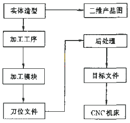 加工工序設(shè)計(jì)完成后,加工模塊根據(jù)需要加工的內(nèi)容安排加工路線,并按設(shè)計(jì)的工序進(jìn)行仿真加工;確定加工工序正確無(wú)誤后,即可生成加工該刀具的刀位文件;然后選擇所用機(jī)床的后處理程序?qū)Φ段晃募M(jìn)行后處理,生成機(jī)床加工用的目標(biāo)文件(G代碼文件);最后還需對(duì)該文件進(jìn)行編輯,去掉仿真過(guò)程中一些不必要的語(yǔ)句,生成最終的加工程序。