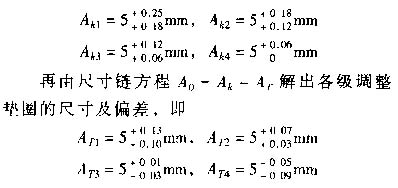 使用固定調(diào)整法時,為了既能保證裝配精度,又不會由于分級數(shù)過多而使裝配工作太復雜,需要運用尺寸鏈理論,確定調(diào)整件的分級數(shù)和各級調(diào)整件的尺寸和公差。