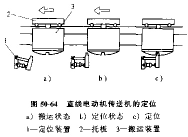 圖50-64顯示直線電動機(jī)傳誦機(jī)設(shè)置的定位裝置及其定位過程。