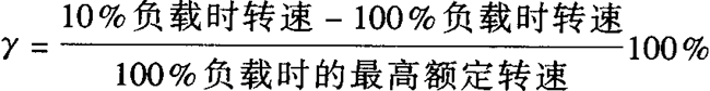 配有控制裝置的調(diào)速電動(dòng)機(jī)的轉(zhuǎn)速-轉(zhuǎn)矩特性曲線,如圖2所示。按照控制器的轉(zhuǎn)速變化率定義是當(dāng)電動(dòng)機(jī)自10%負(fù)載到額定負(fù)載范圍內(nèi)變動(dòng)時(shí),控制裝置能根據(jù)測(cè)速發(fā)電機(jī)信號(hào)自動(dòng)調(diào)整勵(lì)磁,使輸出轉(zhuǎn)速基本上維持恒定。用以表征轉(zhuǎn)速-轉(zhuǎn)矩曲線的參數(shù)是轉(zhuǎn)速變化率γ 其定義為