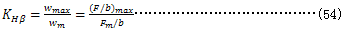 各影響因素引起輪齒沿齒寬的綜合變形、位移和制造誤差的合成量稱初始嚙合齒向誤差(跑合前輪齒嚙合齒向誤差)以表示Fβx表示。它是決定齒向載荷分布系數的重要數據。在通過實測或綜合的精確計算得到初始嚙合齒向誤差Fβx時,可按式(56)至式(60)求得齒向載荷分布系數KHβ值。