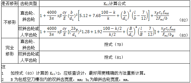 式中:KHβ——接觸強度計算的齒向載荷分布系數,見6.3.2或6.3.3;