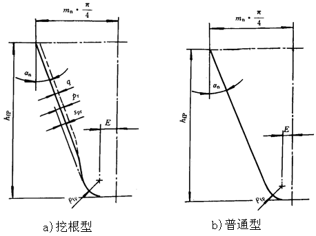 注:an=22.5°;hap/mn=1.0,hfp/mn=1.25;ρfp/mn=0.4