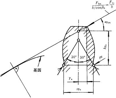 齒形系數(shù)是用以考慮齒形對名義彎曲應(yīng)力的影響,以過齒廓根部左右兩過渡曲線與30°切線相切點的截面作為危險截面進(jìn)行計算。