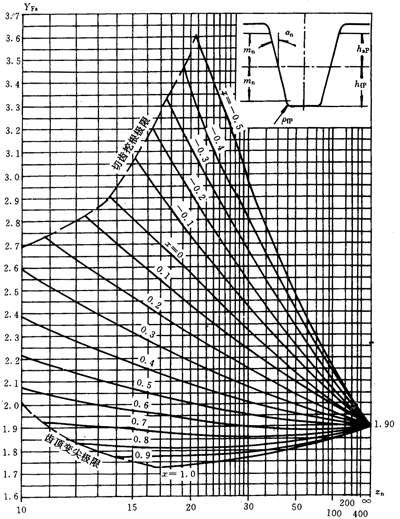 應(yīng)力修正系數(shù)Ys和Ysa是將名義彎曲應(yīng)力換算成齒根局部應(yīng)力的系數(shù)。它考慮了齒根過渡曲線處的應(yīng)力集中效應(yīng),以及彎曲應(yīng)力以外的其他應(yīng)力對齒根應(yīng)力的影響。