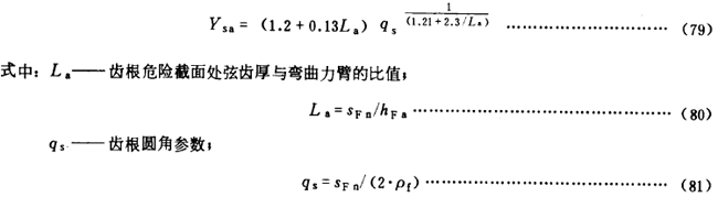 本標(biāo)準(zhǔn)以載荷作用側(cè)齒廓根部危險截面上的最大彎曲應(yīng)力作為名義彎曲應(yīng)力,并經(jīng)相應(yīng)的系數(shù)修正后作為計算齒根應(yīng)力。