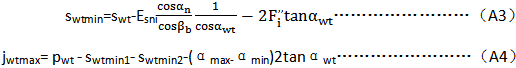 最大的理論側隙也可發(fā)生于當兩個齒輪都按最小實效齒厚swtmin制成,且運行于最松中心距條件下碰在一起時。在實踐中,那種情況不大可能發(fā)生。