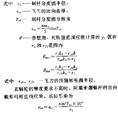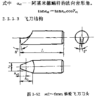 當阿基米德蝸桿的導程角yz1=≤5°時,則飛刀的前刃面可安裝在刀桿的軸向截面內(nèi),其飛刀的齒形為直線,齒形角等于蝸桿的軸向齒形角。如果蝸桿的導程角較大,為了改善飛刀兩側切削刃的工作條件,可采用阿基米德法向飛刀,其齒形應是阿基米德蝸桿的法向截形相同的曲線。
