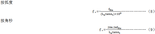 齒廓傾斜偏差可按下列公式換算為壓力角偏差fα