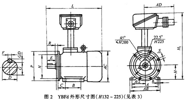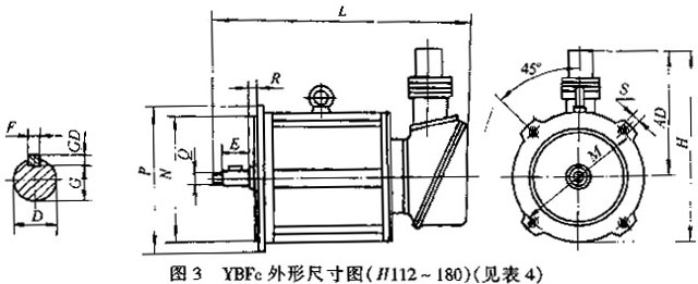 YBF系列風(fēng)機(jī)用隔爆型三相異步電動(dòng)機(jī)外形尺寸 |