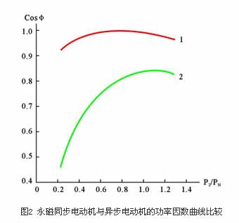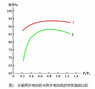 該電機不需要無功勵磁電流,可顯著提高功率因數(可高達1),并減少了定子電流和定子電阻損耗。在電機穩(wěn)定工作時,轉子和定子磁場同步運行,轉子無感應電流,也就不存在轉子電阻損耗,兩者使電動機效率提高2%~8%,而且該電機負載率(P2/PN)在25%~120%范圍內均可保持較高的效率和功率因數,使輕載運行時節(jié)能效果更顯著。
