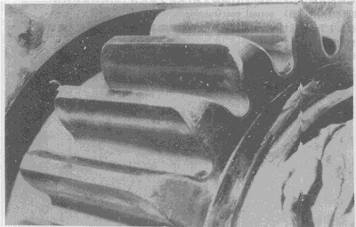 過(guò)載折斷通常使齒輪的幾個(gè)齒損傷,而由疲勞裂紋引起輪齒折斷一般是折斷一個(gè)輪齒。