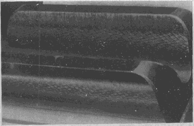 輪齒整個(gè)接觸面的嚴(yán)懲擦傷。在工作節(jié)曲面附近表面磨損不太嚴(yán)重。嚴(yán)重擦傷的另一類(lèi)型見(jiàn)2.1.2中圖。