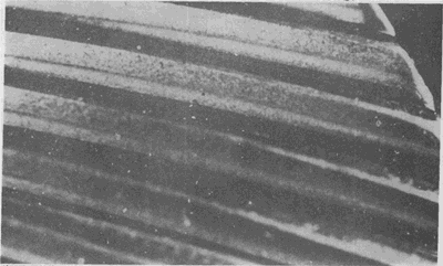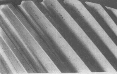 齒面上垂直于滑動(dòng)方向的微小皺紋。這些小皺紋本身也是波狀的,而不是直的,看上去其形狀如同風(fēng)吹沙土,水沖泥漿一樣,只是規(guī)模小得多而已。