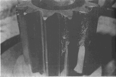 弧齒錐齒輪輪齒上的嚴(yán)重膠合。有時(shí)這種損傷引起工作溫度升高。