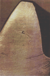 高速運(yùn)轉(zhuǎn)齒輪齒面頂部的沖蝕,其部位與潤(rùn)滑劑噴嘴的方向一致。
