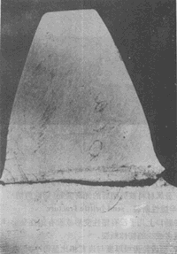 右齒面因一次嚴(yán)重過(guò)載的輪齒剪斷(彎曲過(guò)載)。