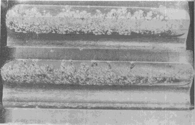齒面上的小蝕坑很淺,一般起因于凹凸不平接觸。通常隨著點(diǎn)蝕的作用,凸出部分被消除后,齒面載荷便重新分布,點(diǎn)蝕不再進(jìn)一步發(fā)生(即點(diǎn)蝕受到抑制)。輪齒初期點(diǎn)蝕見(jiàn)于齒輪運(yùn)轉(zhuǎn)的初期階段,甚至在低于額定載荷下跑合后,早期也會(huì)出現(xiàn)。