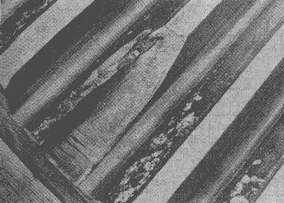 這種變形的特征是在齒面上易看到淺溝槽,溝槽與嚙合輪齒間的接觸線(xiàn)一致。