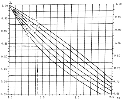 重合度系數(shù)Yε是將載荷由齒頂轉(zhuǎn)換到單對(duì)齒嚙合區(qū)外界點(diǎn)的系數(shù)。