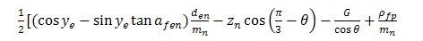 hFe——彎曲力臂。外齒輪由式(191)計(jì)算,內(nèi)齒輪由式(198)計(jì)算。