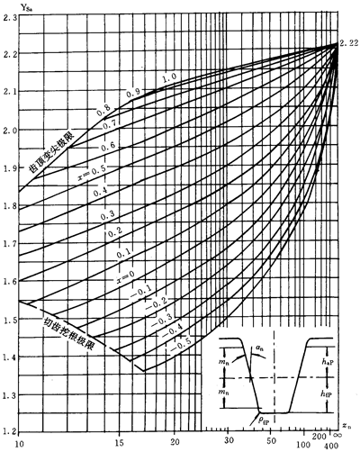 應(yīng)力修正系數(shù)Ysa僅能與齒形系數(shù)YFa聯(lián)用,并且只能用于εan<2的齒輪傳動(dòng)。