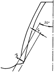 ρF——30°切線切點(diǎn)處曲率半徑。外齒輪由式(182)計(jì)算,內(nèi)齒輪由式(195)計(jì)算。
