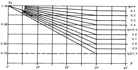 上面式中:當(dāng)εβ>1時(shí),按εβ=1計(jì)算,當(dāng)Yβ<0.75時(shí),取Yβ=0.75;當(dāng)β>30°時(shí),按β=30°計(jì)值。