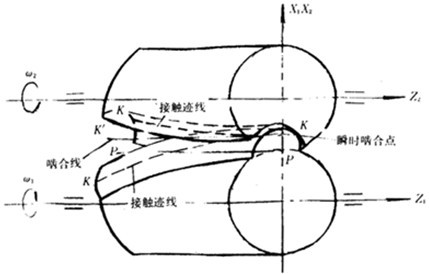 一對齒輪在嚙合過程中,瞬時嚙合點在固定坐標(biāo)空間的軸跡(見4.3條圖示)。