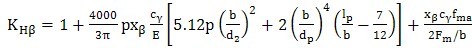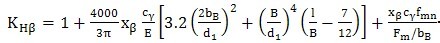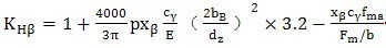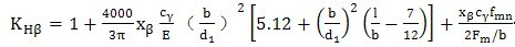 4)完全螺旋線修形(補償彎曲和扭轉(zhuǎn)變形)的與3)相同的齒輪副,KHβ按式(46)確定。