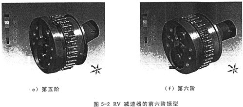 對(duì)上圖有限元模型進(jìn)行模態(tài)計(jì)算時(shí)不必求出全部的固有頻率和振型,越是低價(jià)模態(tài),對(duì)振動(dòng)影響越大,通常取前5~10階模態(tài),精度就已足夠。本課題在分析中求解了前11階模態(tài),這些模態(tài)的固頻率和振型情況見表5-1,圖5-2僅給出減速器的前6階固有振型,通過振型圖和各階振型的動(dòng)畫顯示,可直觀地分析RV減速器的動(dòng)態(tài)特性。