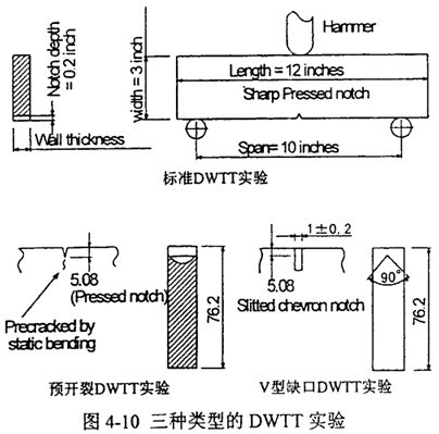 圖4-8和圖4-9分別表示DWTT的試樣標(biāo)準(zhǔn)和斷口形貌。