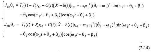 當(dāng)不考慮偏心質(zhì)量,而只考慮存在齒輪齒側(cè)間隙時(shí),方程組(2-14)可化為: