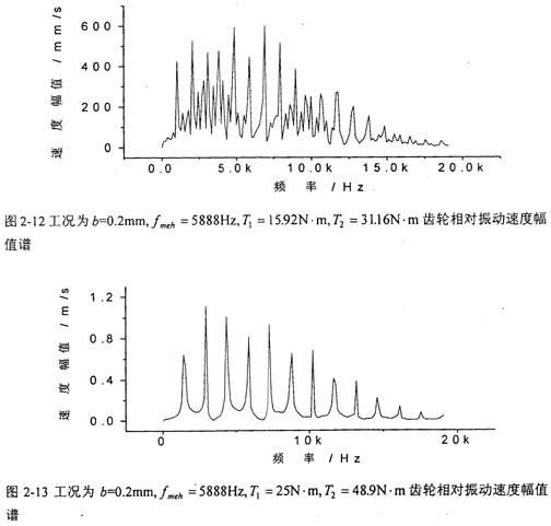 圖2-8中,(a)圖和(b)圖分別是當(dāng)齒輪嚙合頻率仍為5888Hz、但齒側(cè)間隙增加到b=0.3Omm