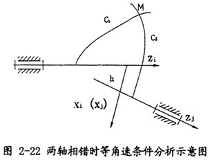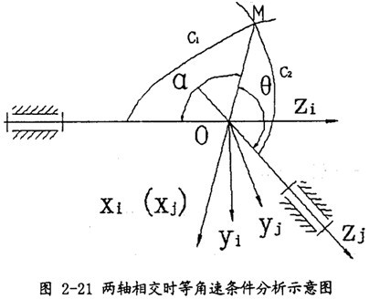 a.兩軸相交時,兩軸交點與嚙合點恒位于兩軸線所成夾角的平分面上,可實現(xiàn)萬向聯(lián)軸器等角速轉動(又稱同步);