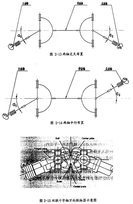 現(xiàn)假設有兩個十字軸萬向聯(lián)軸器,按圖2-13或圖2-14聯(lián)接在一起,主動軸同從動軸與中間軸之間的夾角分別為a