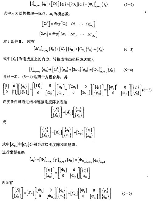 求組合系統(tǒng)的特征值及特征向量,然后可建立組合系統(tǒng)的模態(tài)模型。(不難看出,此處組合結(jié)構(gòu)整體的特征值的數(shù)目由各部件的模態(tài)數(shù)來確定,而不是由它們的結(jié)構(gòu)幾何坐標(biāo)數(shù)確定的)