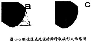剛性區(qū)域的處理是基于小變形理論,通過這種處理,單個構(gòu)件的自由模態(tài)頻率會上升,只有通過這種處理可以在ADAMS中進(jìn)行模態(tài)疊加和模態(tài)綜合,得出系統(tǒng)的固有頻率。其處理的方法是根據(jù)構(gòu)件間的不同的運動副連接形式,用點質(zhì)量單元上的節(jié)點(有時物體上自己的節(jié)點也可,不一定非要再建立質(zhì)量單元)和實體上相應(yīng)的節(jié)點進(jìn)行耦合,形成主節(jié)點和從節(jié)點關(guān)系,構(gòu)成剛性區(qū)域。其連接形式如圖6-5,在此圖的連接形式中,a圖的連接形式可以傳遞所有載荷形式,是一種推薦的連接方式;c圖中主節(jié)點僅同單個從節(jié)點相連傳遞的載荷形式有限,不合適選用。