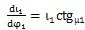 同樣,由微分幾何,曲線H2的向徑與切線正方向的夾角μ2可由下式計算: