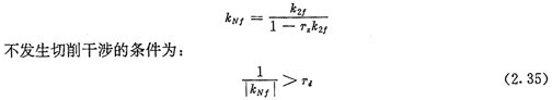 另外,當(dāng)選用半徑為Td的刀具加工內(nèi)齒圈齒廓時,在齒根處可能發(fā)生切削干涉(過渡切削)。同樣由式(2.24)可計算出曲線H2在對應(yīng)于齒根處的相對曲率kZ 了,齒廓曲線HN在齒根處的相對曲率kNf為: