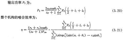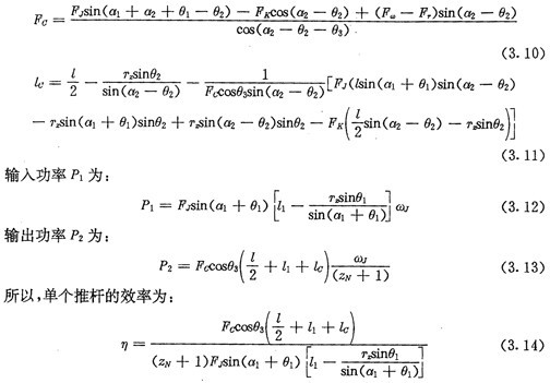 計(jì)算時(shí),先根據(jù)輸入功率P1及轉(zhuǎn)速ωJ由(3.19)式計(jì)算出FJm,然后對(duì)每一工作推桿由式(3.17)計(jì)算出FJi,由式(3.10)式及式(3.11)計(jì)算出Fci及lci,最后代入式(3.21)計(jì)算出效率η。