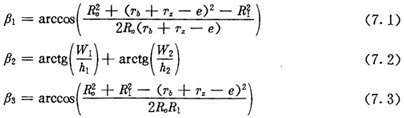 上式中h1、h2、W1和W2都是擺動(dòng)中心與內(nèi)外滾子中心相對(duì)位置的參數(shù),見圖7.2(a)。