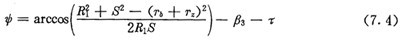 2點(diǎn)向徑與法線的夾角,可由圖7.3求得,為: